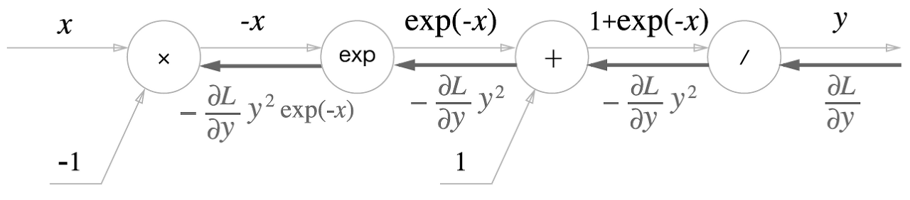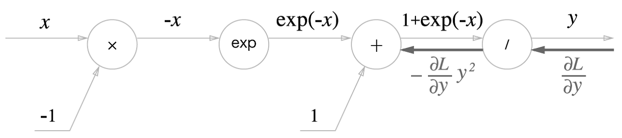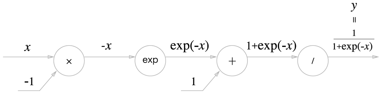 위의 식을 계산그래프에 국소적미분과 함께 표현하면 아래와 같다.