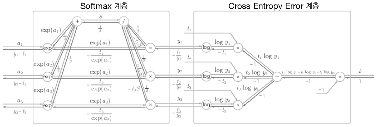 - 미분의 효율적 계산 : 역전파를 통해 국소적 미분을 전달해 효율적으로 계산 가능.