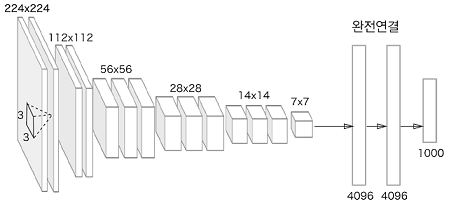 - 층 깊이에 따라 VGG16, VGG19로 구분