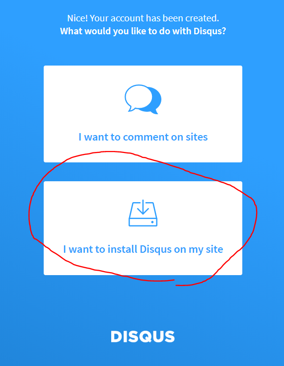 그 후 아래의 I want to install Disqus on my site를 클릭한다.