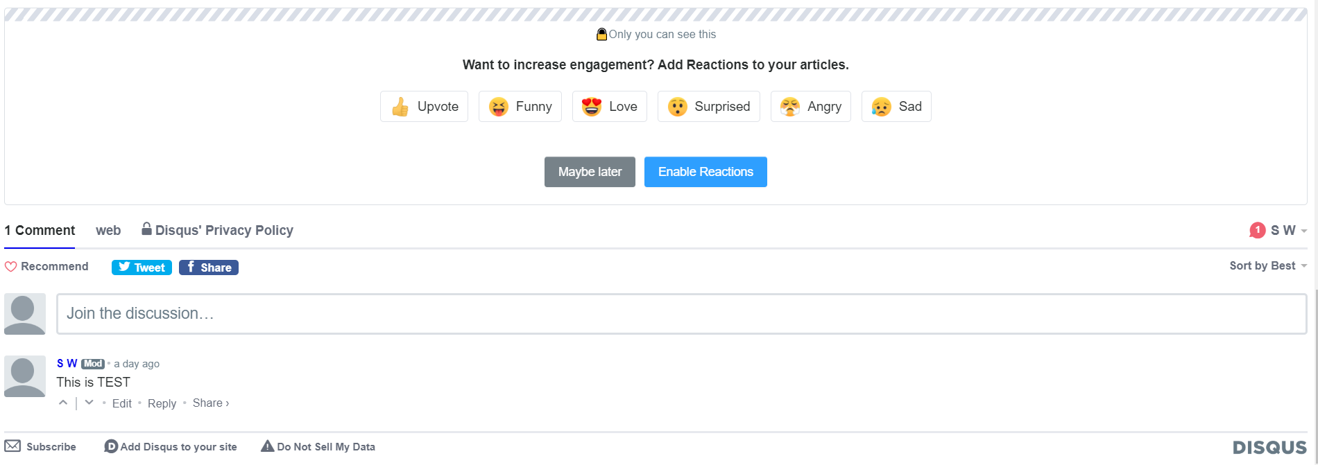 여기에선 DISQUS 사이트의 기능을 사용하도록 한다.