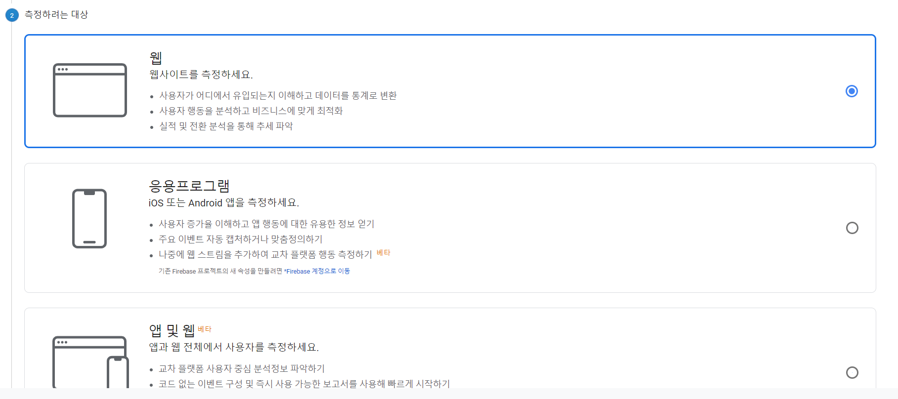 먼저 https://analytics.google.com 에 방문하여 무료로 계정 만들기를 클릭한다.