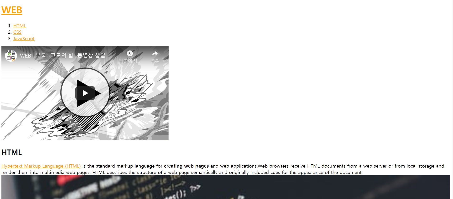 CSS부분만 색깔이 red로 바뀌고 underline이 쳐진 것을 볼 수 있다.