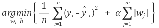 m은 가중치의 갯수(혹은 특징의 갯수)이고, α는 페널티의 효과를 조절해주는 하이퍼파라미터다. 이 값이 커지면 페널티 항의 영향력이 커지고, 작아져서 거의 0이 되면 선형 회귀와 같아진다. MSE와 penalty항의 합이 최소가 되게 하는 w와 b를 찾는 것이 바로 라쏘의 목적이다.