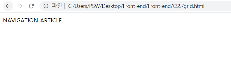 위와 같이 div를 div 부모 태그로 한 번 더 감싸주고, grid라는 id를 준다. 그 후, display 속성을 grid로 선택한 뒤 grid-template을 선택해주면 된다. 여기서 grid-template은 어떻게 배치할 것인지를 나타낸다. grid-template-columns는 grid로 묶인 친구들을 column으로, grid-template-rows는 row로 배치해준다. 이 때, 속성값 150px 1fr은 차지하는 공간의 비율을 나타낸다. 1fr이라는 것은 NAVIGATION이 150px을 차지하고 남는 공간을 모두 ARTICLE이 차지하도록 한다는 것이다. 2fr 1fr와 같이 사용하면 2:1의 비율로 공간을 분할하도록 할 수 있다.
