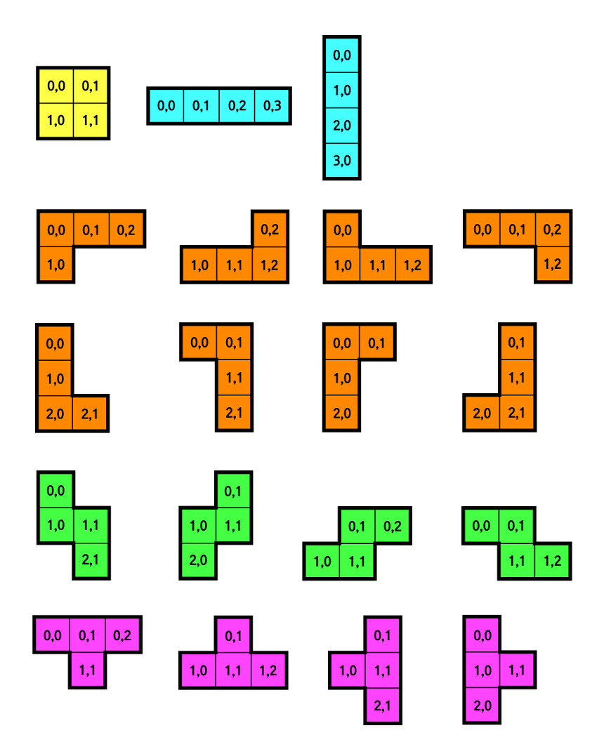 - 모든 경우란 무엇인가? -> 가능한 모든 테트로미노의 모양(회전과 대칭을 이용)