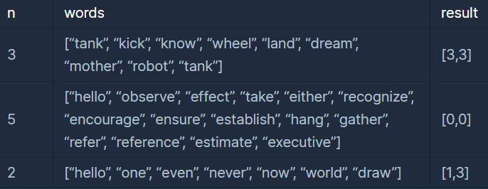 - 단어의 길이는 2 이상 50 이하입니다.