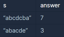 예를들면, 문자열 s가 abcdcba이면 7을 return하고 abacde이면 3을 return합니다.