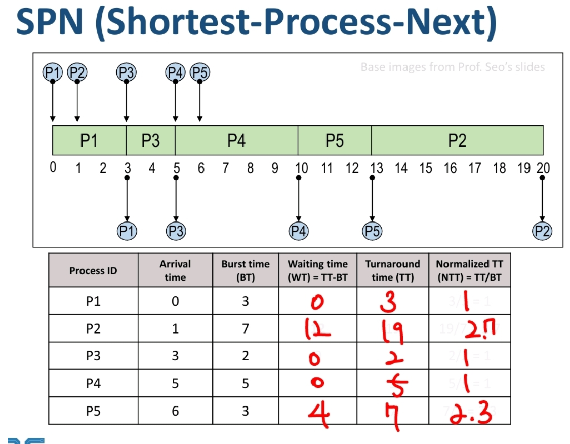 - SJF(Shortest-Job-First) = SPN(Shortest-Process-Next)