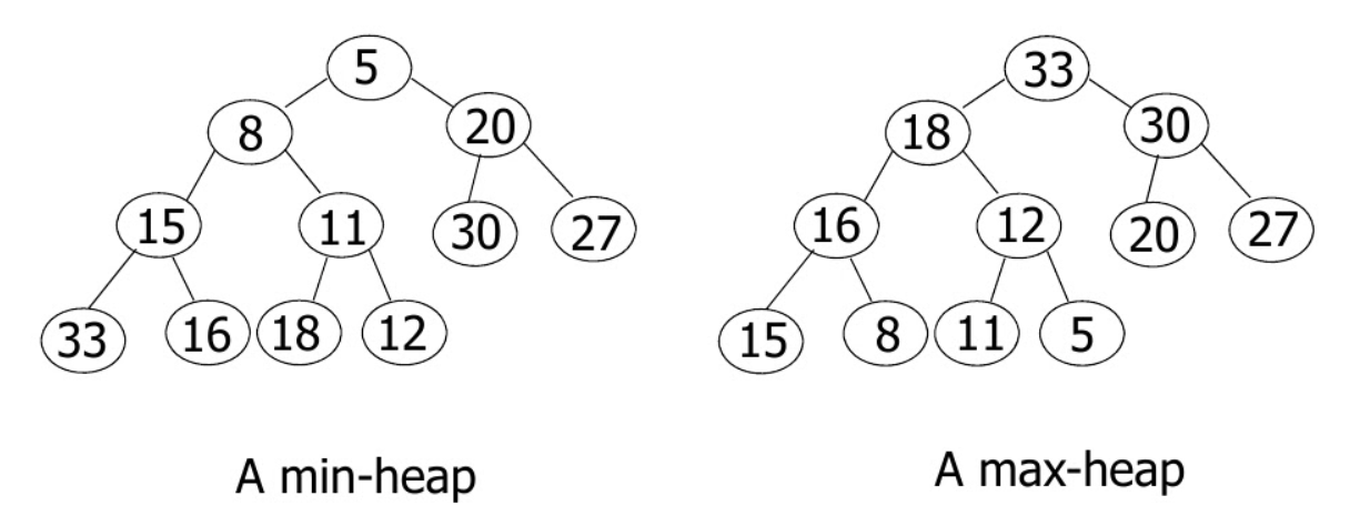 - 모든 노드의 값이 자식 노드의 값보다 작은 이진트리(min-heap, max-heap은 그 반대)