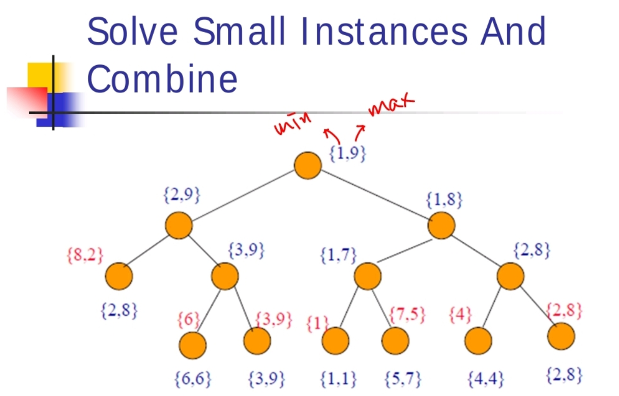 - 분할 과정이 다 끝났으면 small set 안에서 min,max를 찾는다