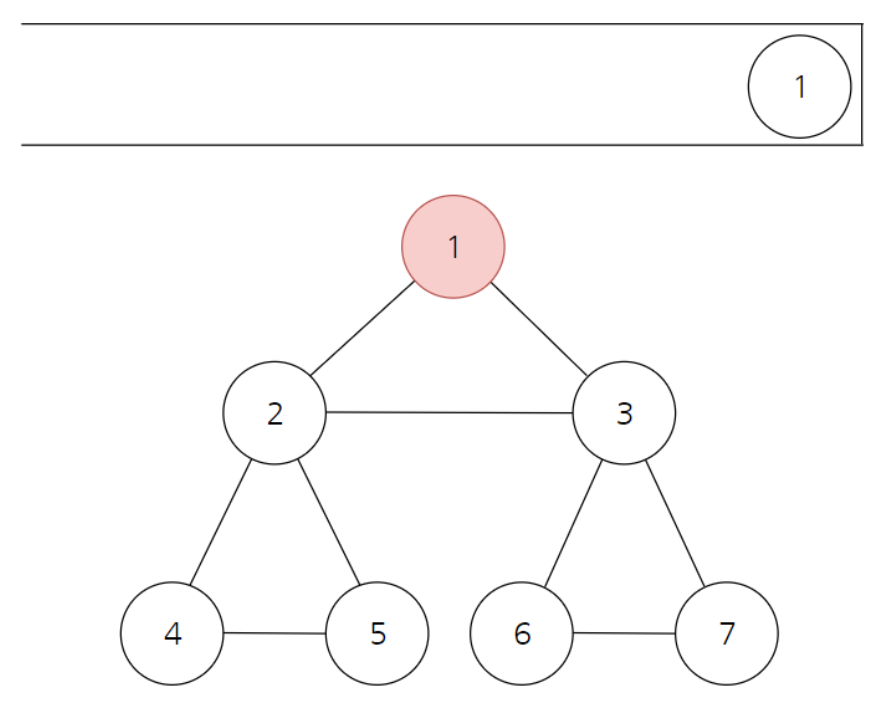 먼저 1번 노드를 스택에 넣고 방문처리한다.