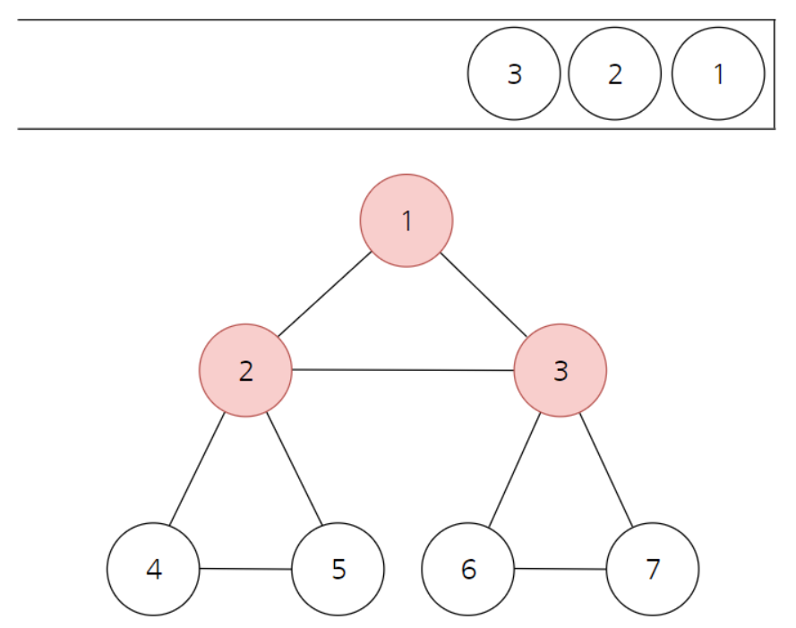 2번 노드와 연결된 3번 노드를 스택에 넣고 방문처리해준다.