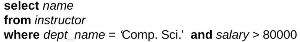 - Cartesian product operation이다.(예를 들어, from instructor, teaches라고 하면 instructor X teaches를 말한다.)