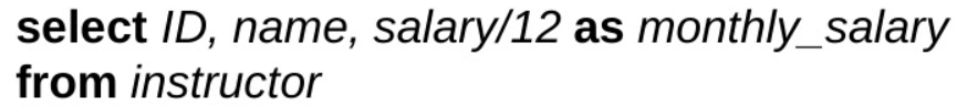 - select 구문은 수식(arithmatic expression)을 포함할 수 있다.