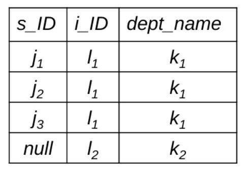 - 나뉘어진 2개의 relation을 하나로 합칠 때 원래의 테이블에서 데이터 손실이 발생하는 것