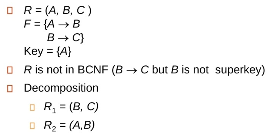 - BCNF와 dependency preserving을 함께 얻는 것은 힘들다