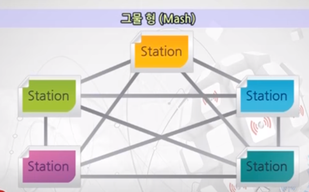 - Mesh형(그물형) : 여러 장치들이 서로 상관성 없이 연결되어 있는 구조