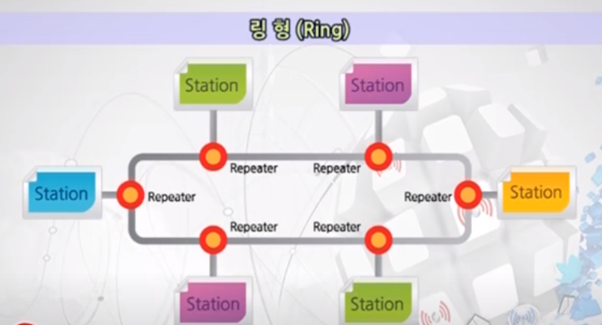 - Ring형 : 장치와 링크들이 "링" 형태로 연결되어 있는 구조