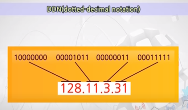 DDN(Dotted-Decimal Notation)으로 표기(8비트씩 끊어서)