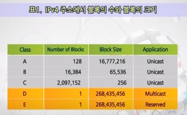 - 클래스 A,B,C는 유니캐스트(일대일 통신)을 사용하고 클래스 D는 멀리캐스트(일대다 통신)을 사용