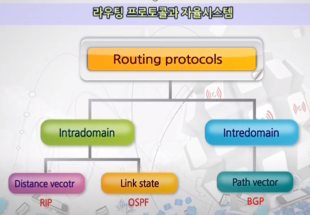 라우팅 프로토콜은 내부 게이트웨이 프로토콜과 외부 게이트웨이 프로토콜로 구분한다