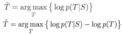- MMI를 objective function으로 사용, S는 source sentence T는 target sentence