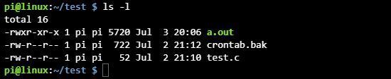 -rw-r--r-- 1 pi pi 52 Jul 2 21:10 test.c