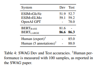 - BERT LARGE가 BERT BASE를 모든 task에서 outperform