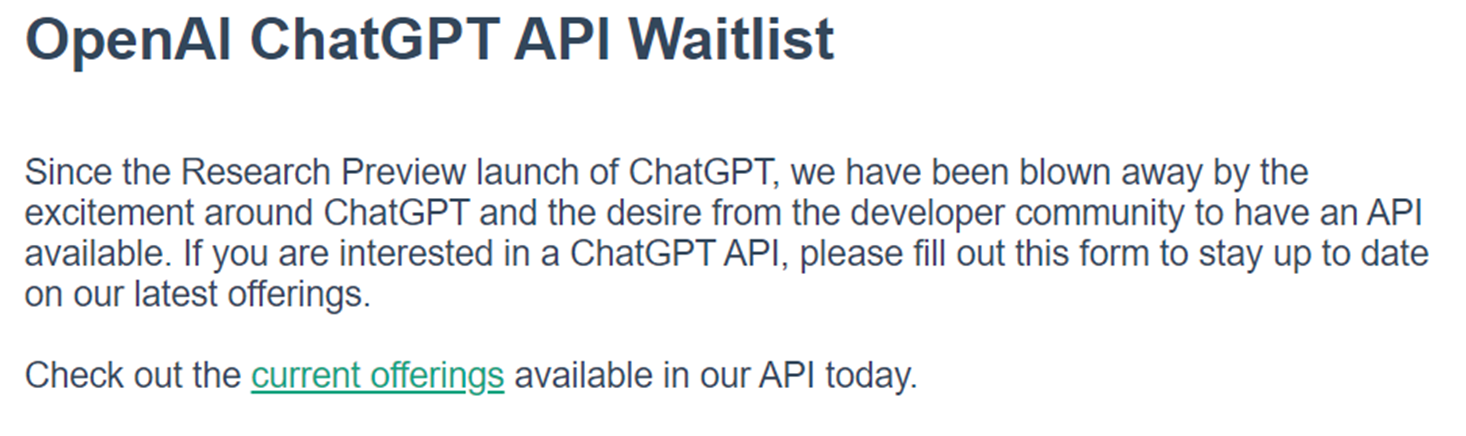 현재 API로는 사용할 수 없다고 하는데 이는 추후 나온다고 하니 기다려보면 될 듯하다. API 사용 신청 form을 작성하고 waitlist에 이름을 넣어두면 된다. 개발자 커뮤니티의 무수한 요청에 의해 곧 API를 만들 예정이라고 한다.